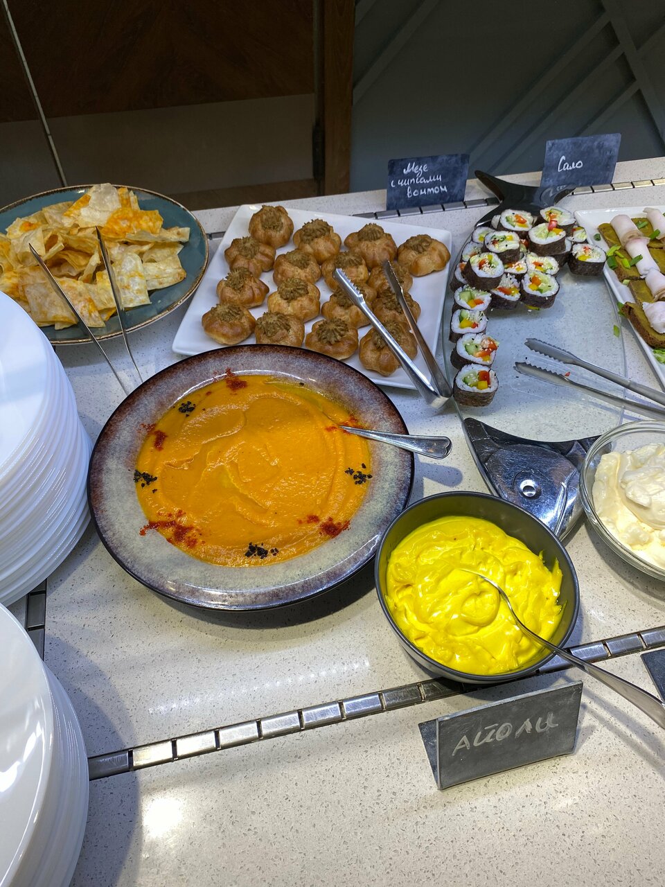 Отдыхали с мужем с 1-3 ноября по тарифу-Все включено. Плюсы: номер (чистый,просторный,уютный,с мини баром), спа-комплекс(2 бассейна,купель,5 саун),тир, бильярд,КВИЗ(развлекательная викторина),зоопарк Минусы: еда и напитки (шведский стол разнообразный,но безвкусный,блюда недоготовлены,либо не из свежий продуктов.Из алкогольных напитков,все спиртовые, не очень хорошего качества ,как будто пакетированное. Кофе-одно название,зерна в кофемашине отвратителтные. Весь отдых пили только чай и сок,за приятным алкоголем лучше спуститься в бар.живая музыка не очень,вокал певиц оставляет желать лучшего,не понравилось. Ставим 4 за просторную территорию,вернемся ещё,будем надеяться,что шведский стол улучшиться!