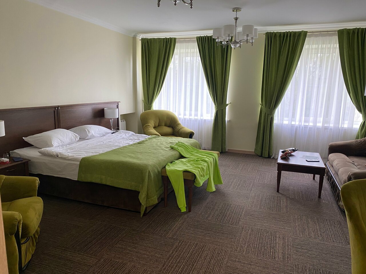 Были в марте 2025года отелю уже нужен капитальный ремонт по всей территории, номера обычные у нас был без кондиционера не знаю как в других номерах но если отдыхать летом большой минус, плюс оч плохой телевизор и сеть, а так номера убраны и чистые. Было написано всё включено по факту шведский стол маленький зоопарк и бассейн с банями других развлечений кроме как детских комнат и площадок не было плюс 30 минут аренды велосипеда и бисероплетения. Шведский стол был обычный, ужин нам попался прям скудный. Бассейн и бани были хорошие но обязательное ношение шапочек раздражало плюс около бассейна не было надувных каких либо вспомогательных надувных предметов для плаванья. На 4 звезды отель не тянет плюс ценны везде по территории приличные