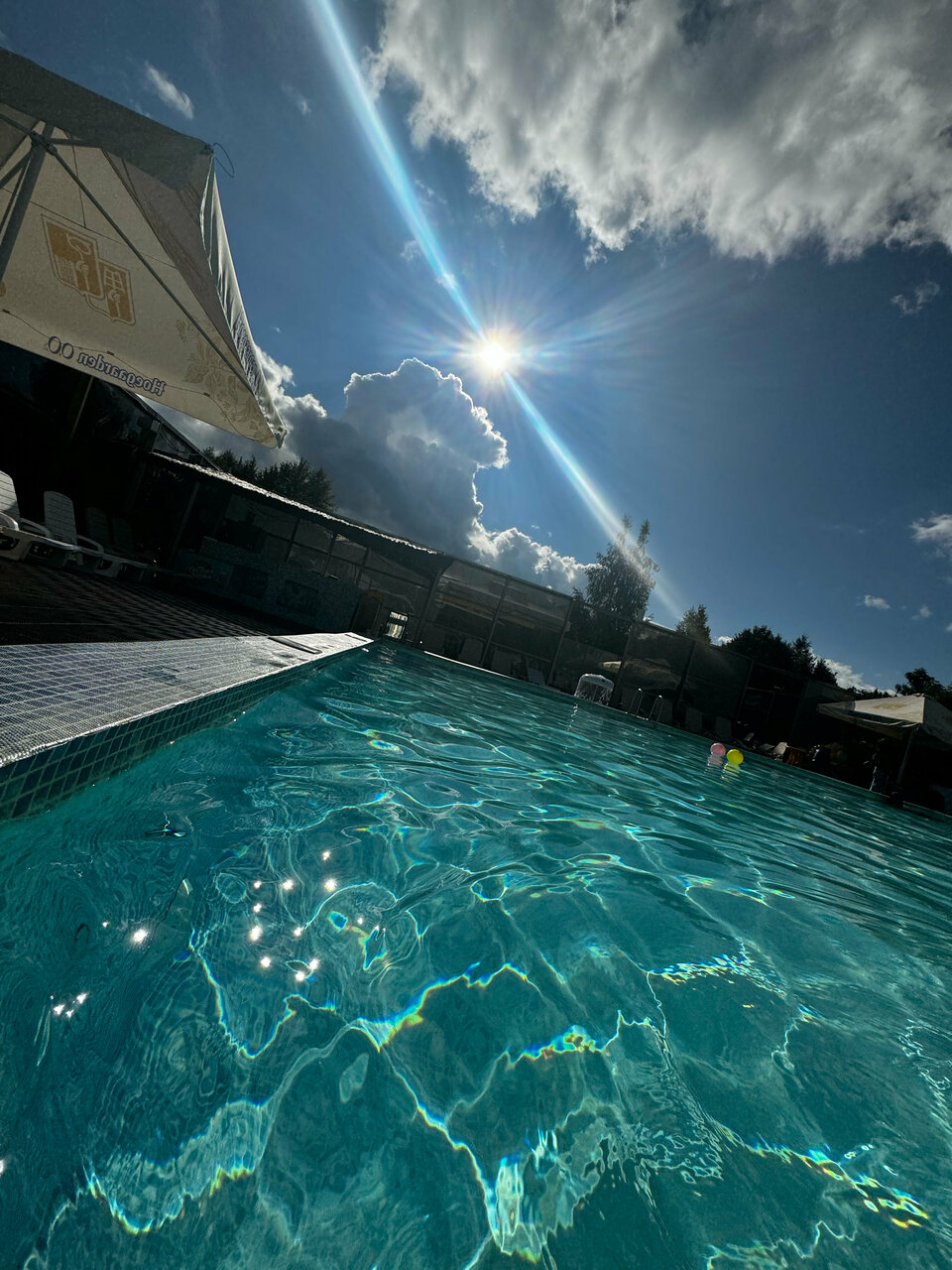 Из плюсов — тихо и спокойно, хотя бетонка в 2 минутах. Столовая. Выбор еды не очень, качество на 4. Достаточно маленькая, перед временем приёма пищи очереди занять столы. Всё коктейли на основе водки, даже мохито. Пиво так себе. Бассейн. Маленький, раздевалки очень маленькие, места мало. Душ около бассейна. Мыла, шампуня и прочего нет. Анимация. Чуть больше ноля. Детские дискотеки вечером. И это при заявленных 40 анимациях. Для инфо. Даже выйти через кпп наружу — нужен пропуск с ресепшена. В домике. Более-менее в плане переночевать, холодильник и СВЧ. Раковины на условной кухне нет. Куча древней мебели стоит пустая. Ещё плюс — приветливый и квалифицированный персонал и на территории и в столовой и в бассейне..