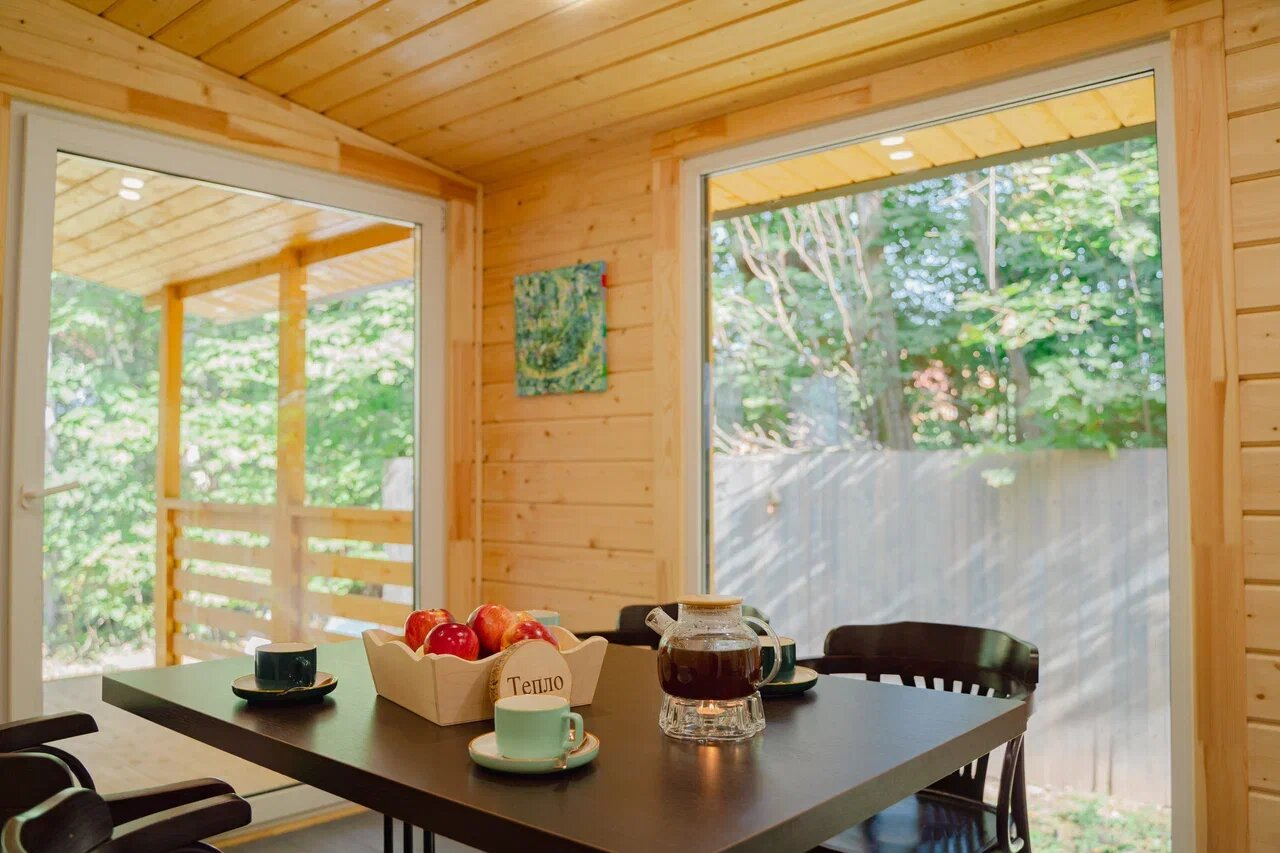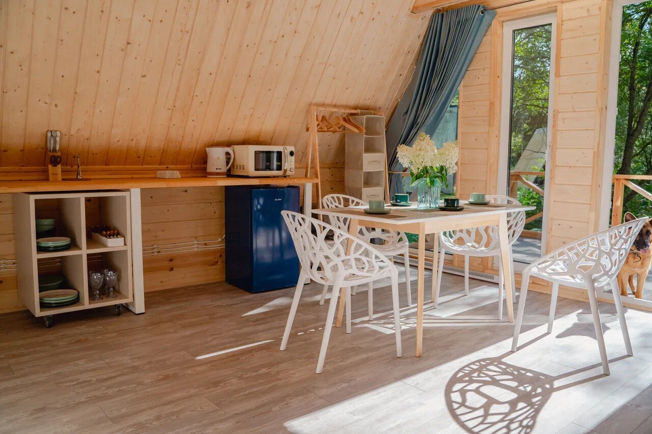 Прекрасная атмосфера, гостеприимные хозяева и чудесное оформление. Удобно добираться, удобно отдыхать и всё ещё очень красиво. Видно, с какой ответственностью люди подходят к тому, что делают. Завтраки очень вкусные — берите обязательно. В домах тепло, красиво, чисто и эстетично. Мангалы чистые и удобные. Отличные постельный принадлежности, общая чистота на высоте