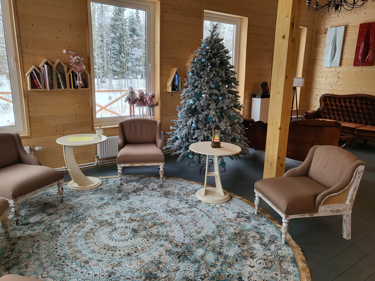 Отдыхали на Рождество. Отель очень понравился. Шикарный, внимательный, профессиональный состав персонала. Домики теплые, комфортные, уютные. Есть все необходимое для комфортного отдыха. Вкусная еда в ресторане с приятным обслуживанием. Баня уютная, чистая, на мой вкус очень жаркая, но спасло окно в парилке))) Рекомендую для тихого, комфортного уединения с природой.