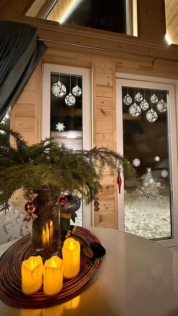 Проживание в домике понравилось, получили удовольствие и хорошо отдохнули. Полный релакс и тишина, тк никого не было. По территории везде сопровождала местная овчарка Альфа. В самих домиках очень чисто, тепло, интерьер продуман до мелочей и все необходимое есть. Завтрак на выбор, умеренные порции, красивая подача. Отдельное спасибо администратору Милане — всегда на связи, все подробно объяснила, показала и в целом очень милая и приятная девушка. Вокруг красота леса. Единственный минус, то, что дорожки были ледяные и скользкие. В остальном всем довольны и впечатления положительный.