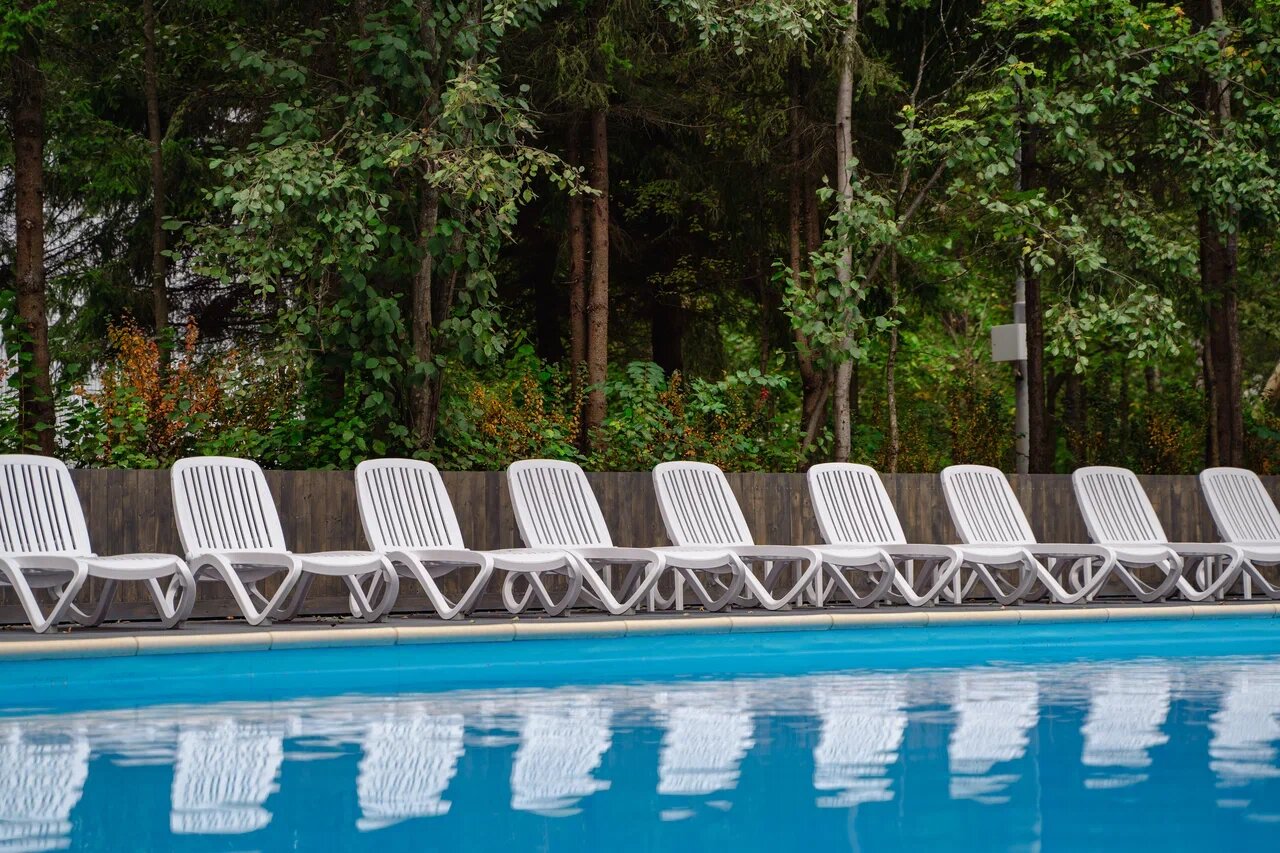 - Бассейн под открытым небом.; Возможность отдыха с собаками.; Спортивные площадки (волейбол, баскетбол).; Баня (уютная и чистая).; Вкусная еда в ресторане.
