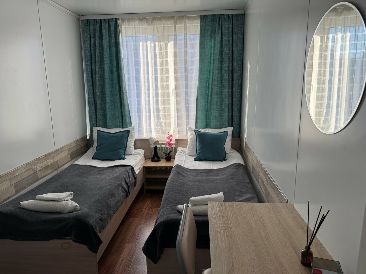 Плюсы то что отдельный туалет, душ, и кровать. Но выспаться вы сможете при условии если никто не будет гульманить или заниматься сексом. Так как за счёт отсутствия звукоизоляции эффект полного присутствия. Одним словом жесть помылся но не отдохнул и не выспался пришлось уехать в 5. Так как спать не давали.