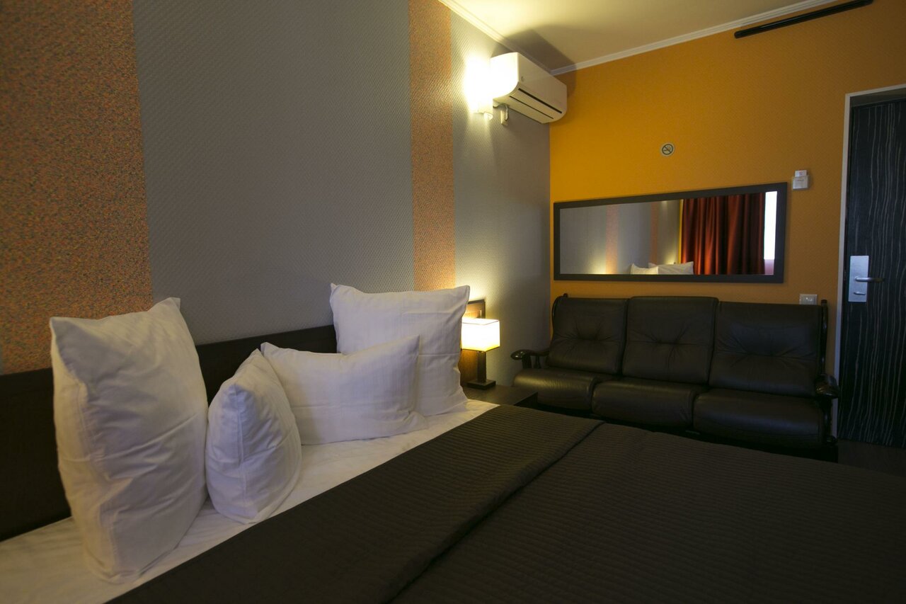 Хорошие удобные номера, кровати средней жёсткости, ванная чистая. Парковка за отдельную плату есть, причём довольно большая. Персонал очень приветливый и внимательный. От дороги находятся близко, до аэропорта минут 10 ехать.