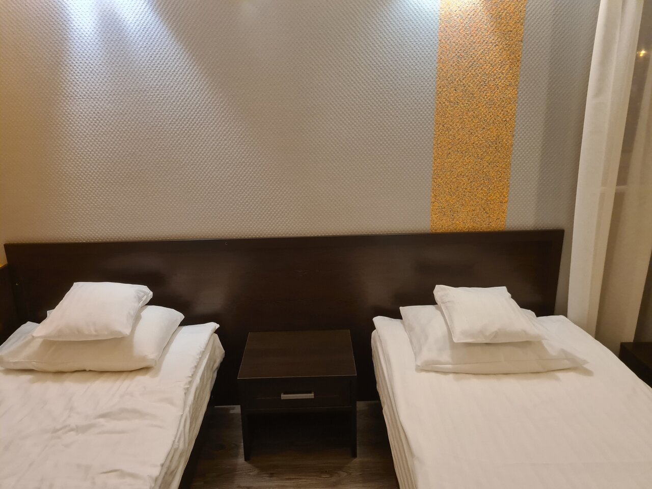 В целом не плохо: в первую ночь ночевали в номере повышенной комфортности, все понравилось, а вторую ночь пришлось снять номер по бюджетнее, к сожалению в номере было холодно, горячей воды не было, телевизор не включался, связи с администрацией не было (внутренний телефон не работал), так что, если хотите жить с комфортом, нужно переплатить