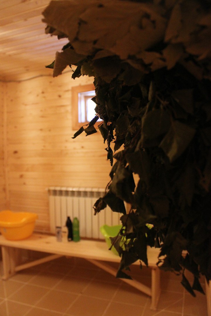 Русская баня на дровах, печь более 5 тонн кирпича. Большая 6*8, комната отдыха, помывочная парилка, туалет. В бане есть посуда, чайник, стол, скамьи.