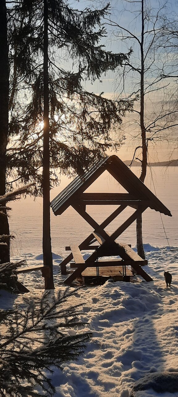 Удобства: — Номера (3500–8000 ₽/ночь) с телевизором, холодильником, феном, чайником. — Бесплатная парковка, летняя веранда, терраса с камином. — Сауна, баня, собственный галечный пляж, рыбалка, катание на лодках и лыжах. — Детская площадка, настольный теннис, бадминтон, зона для пикника. — Проживание с животными (платно), уборка, стиральная машина.