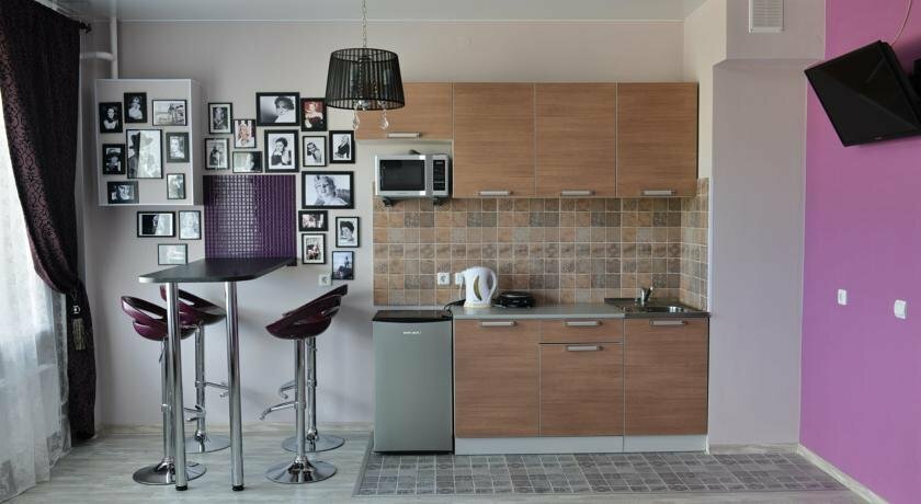 + очень удобное месторасположение, большой номер, чистота, всё необходимое в апартаментах есть - шумоизодяцию хотелось бы лучше, завтраки не предполагаются, слабый вай-Фай, далеко от остановки