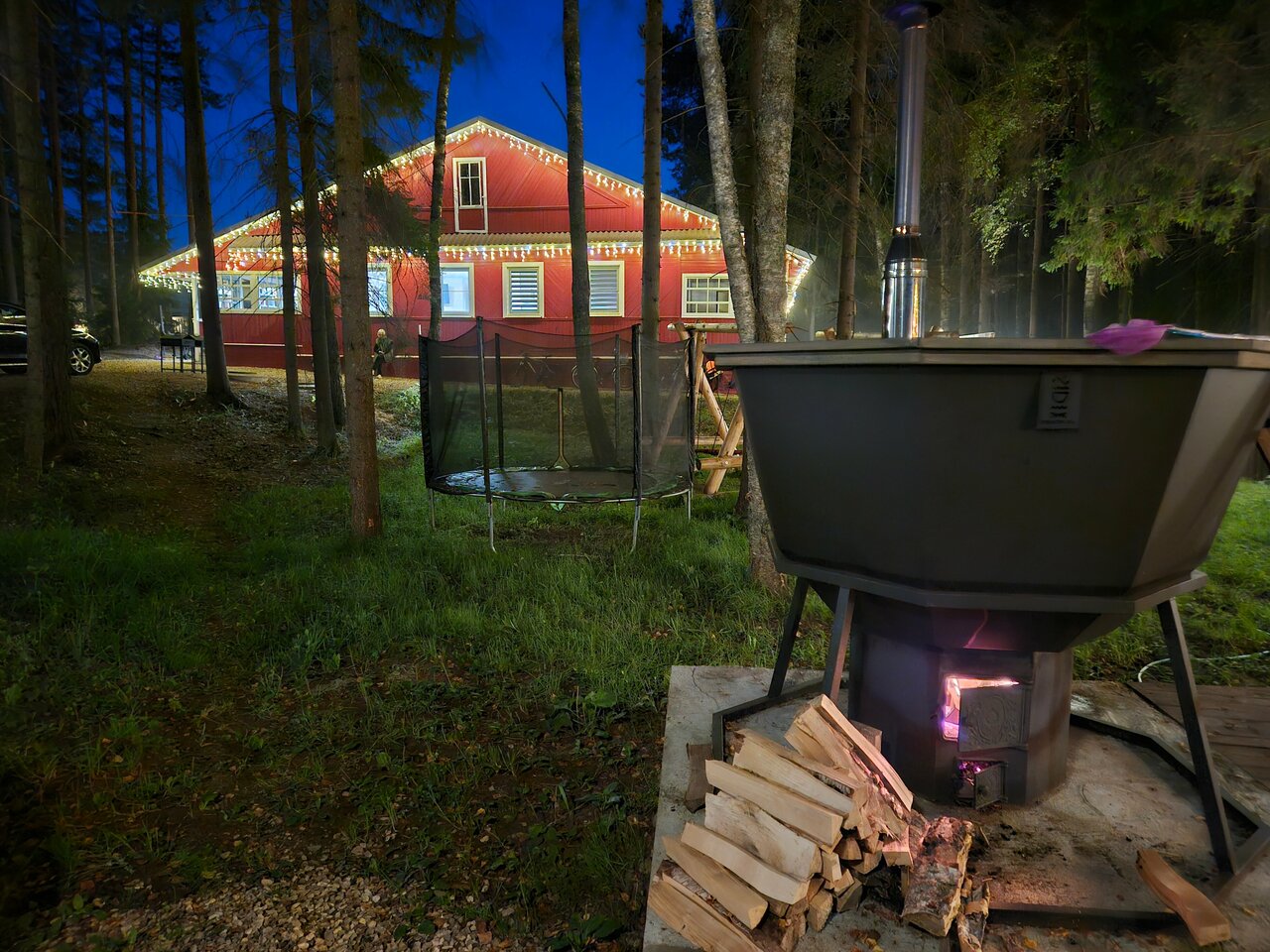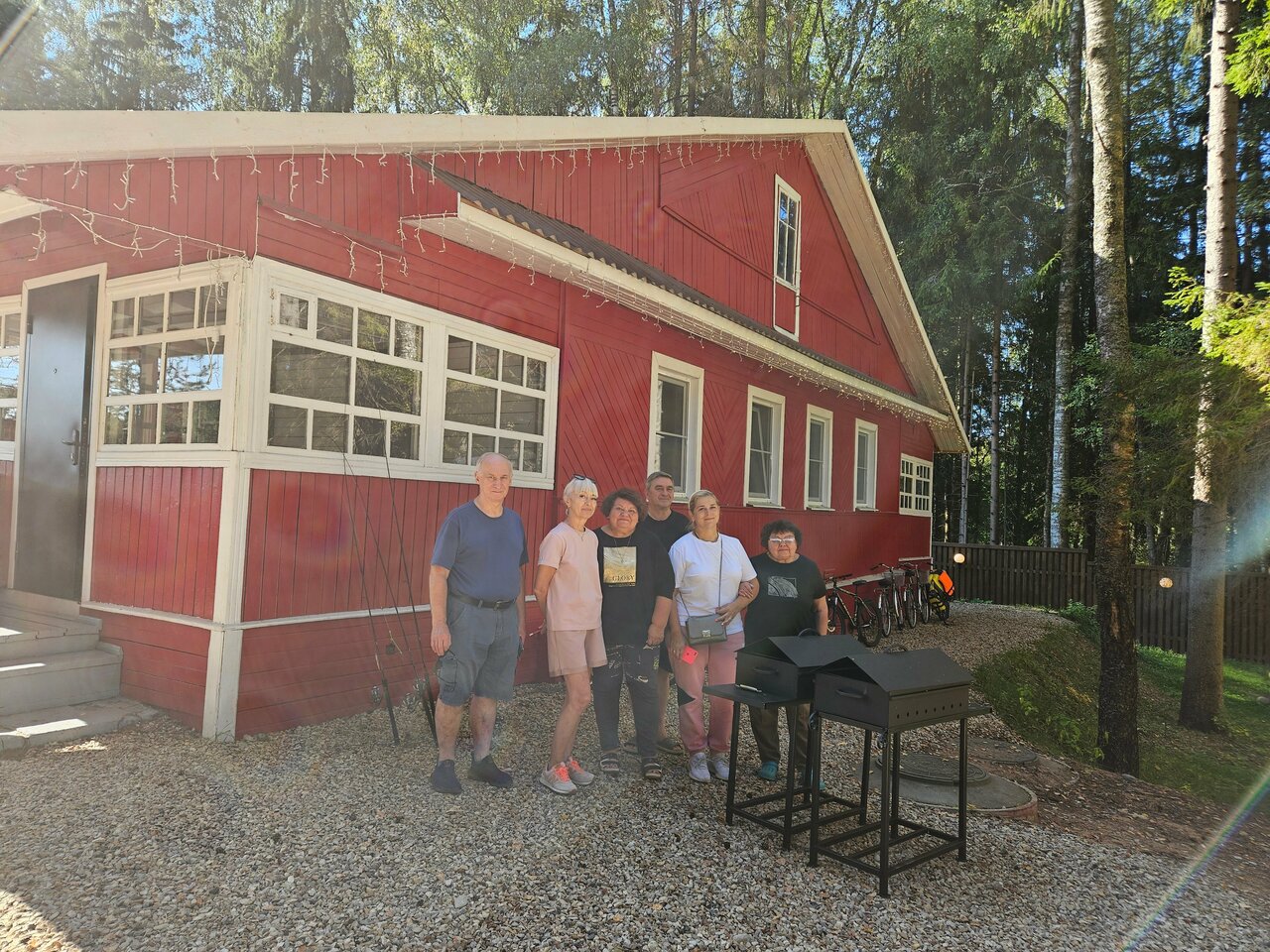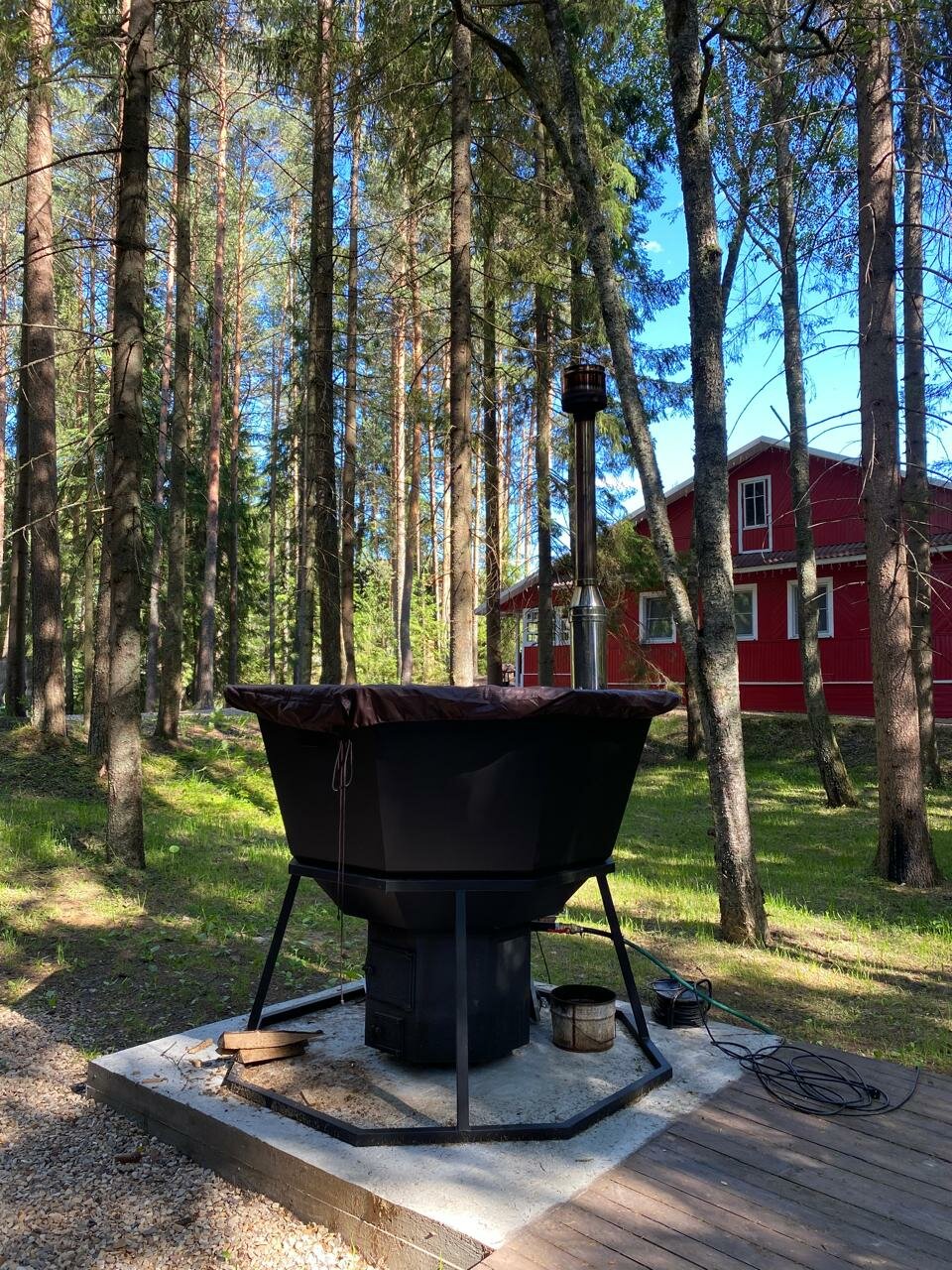 Отдыхали семьёй. Нам очень понравилось. Хозяин очень доброжелательный и гостеприимный. Дорога на озеро проходит через хвойный лес, в котором земляника и черника растут. На территории баня, чан и батут для детей, все очень продумано.