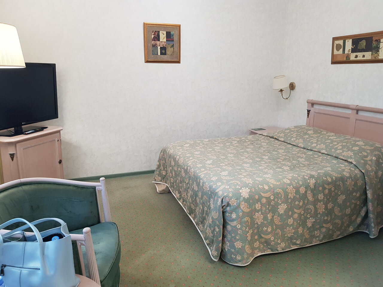 Двухместный номер с двуспальной кроватью, телевизором, столиком и санузлом, креслом или платяным шкафом (уточняйте при бронировании)
