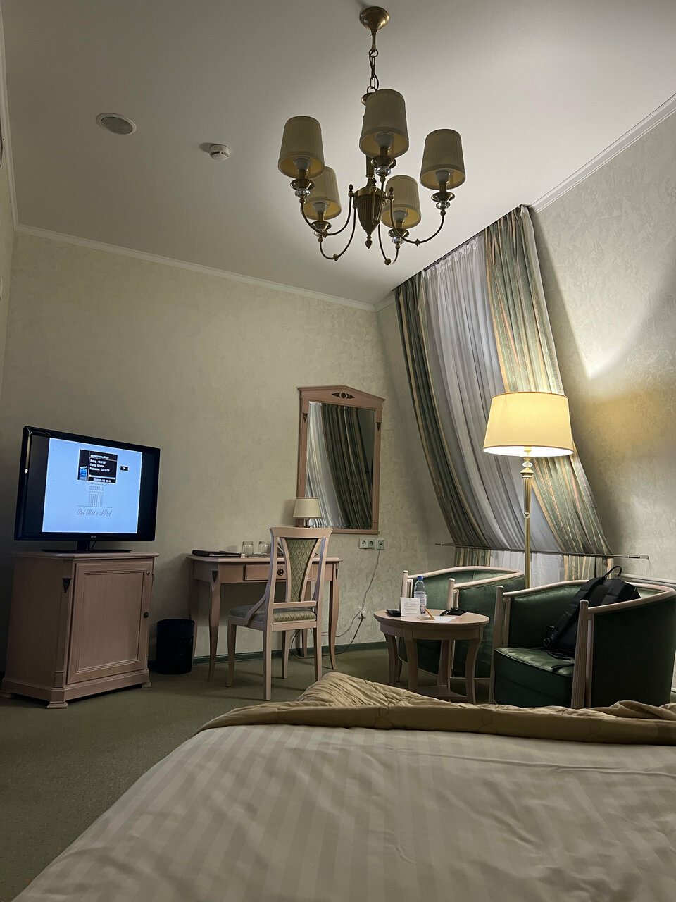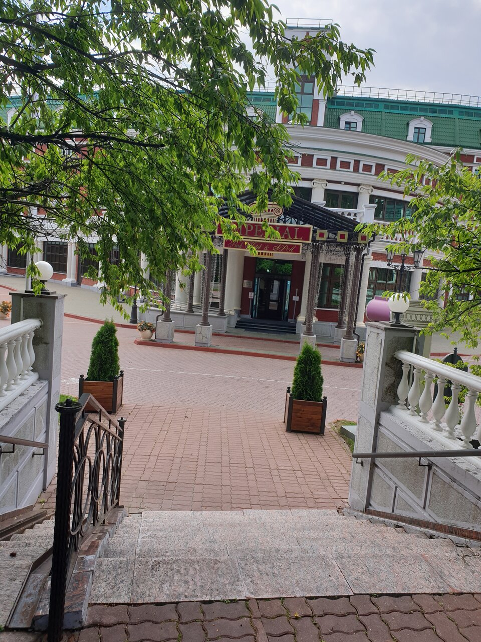 Красивый отель. Хорошее место для тех, кто любит рыбачить. Там есть специальный пруд с рыбой и прокат всего инвентаря. Есть милые тропинки для прогулки вдоль реки. Есть спорт комплекс. Небольшой парк. Спа, мед центр. Вкусная еда в ресторанах и милые официанты. На первом этаже красивейшие картины, которые можно приобрести. Огромные номера. Мне там понравилось очень. Красивые закаты можно наблюдать вечером с личного балкона. Это супер! Спасибо отелю! Отдыхали там всего лишь 2 дня, но успели отдохнуть там.