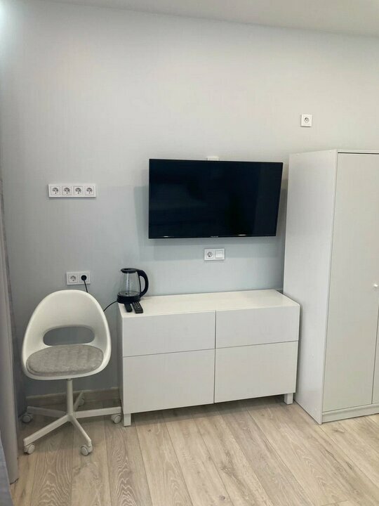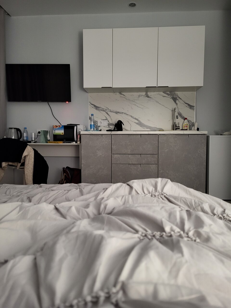- Наличие кухонных принадлежностей в студиях (микроволновка, холодильник).