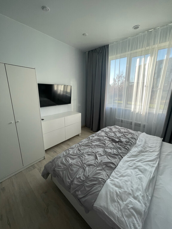 Комната площадью 18 м2 с двуспальной кроватью и шкафом, санузлом с душевой, феном, туалетными принадлежностями и полотенцами. В каждой комнате есть Smart TV, WiFi