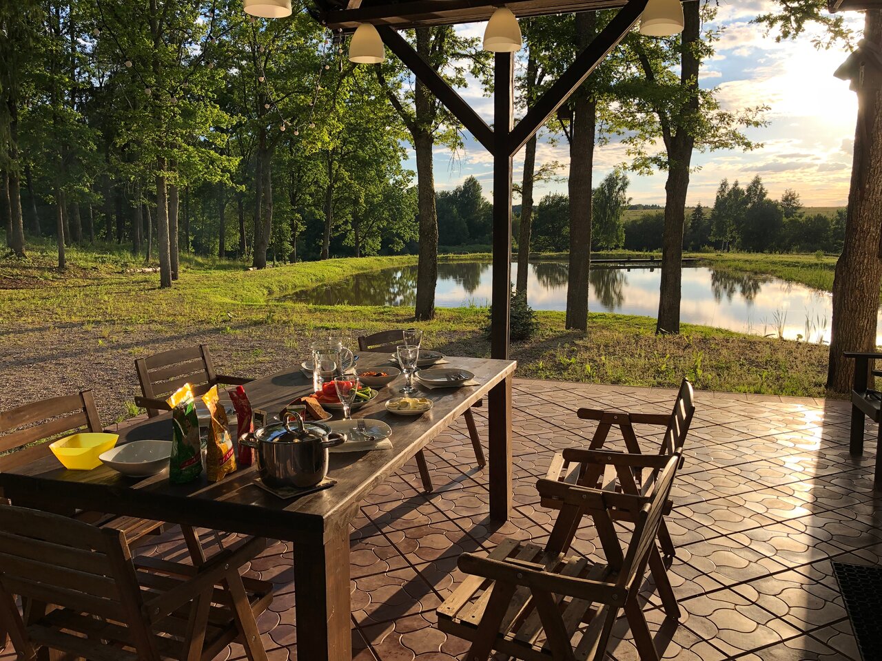- Шикарная терраса с видом на лес и пруд.