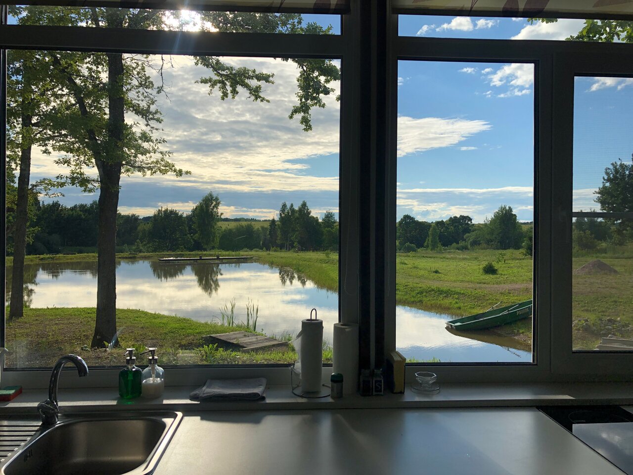 - Отличное место для отдыха на природе с озером, лодкой и рекой.