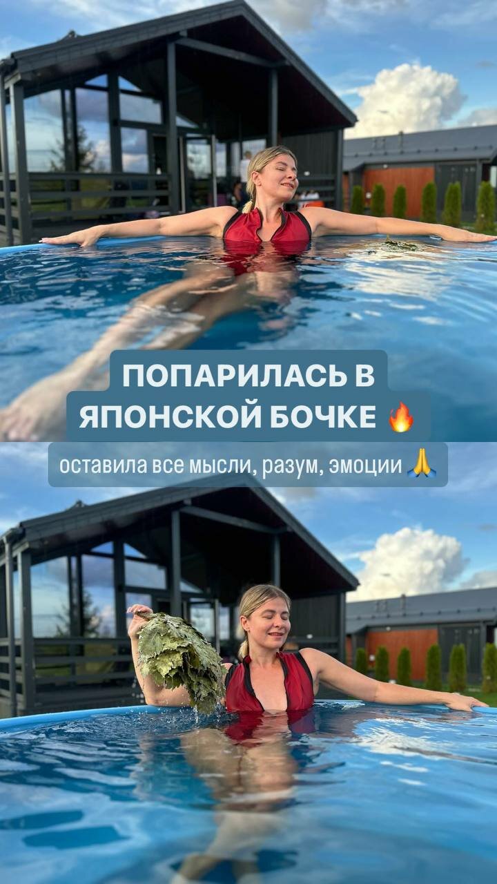 Дубовые либо березовые веники запариваются в купели разогретом до 39-42 градусов с добавлением грейпфрута и ароматических масел хвойных деревьев.