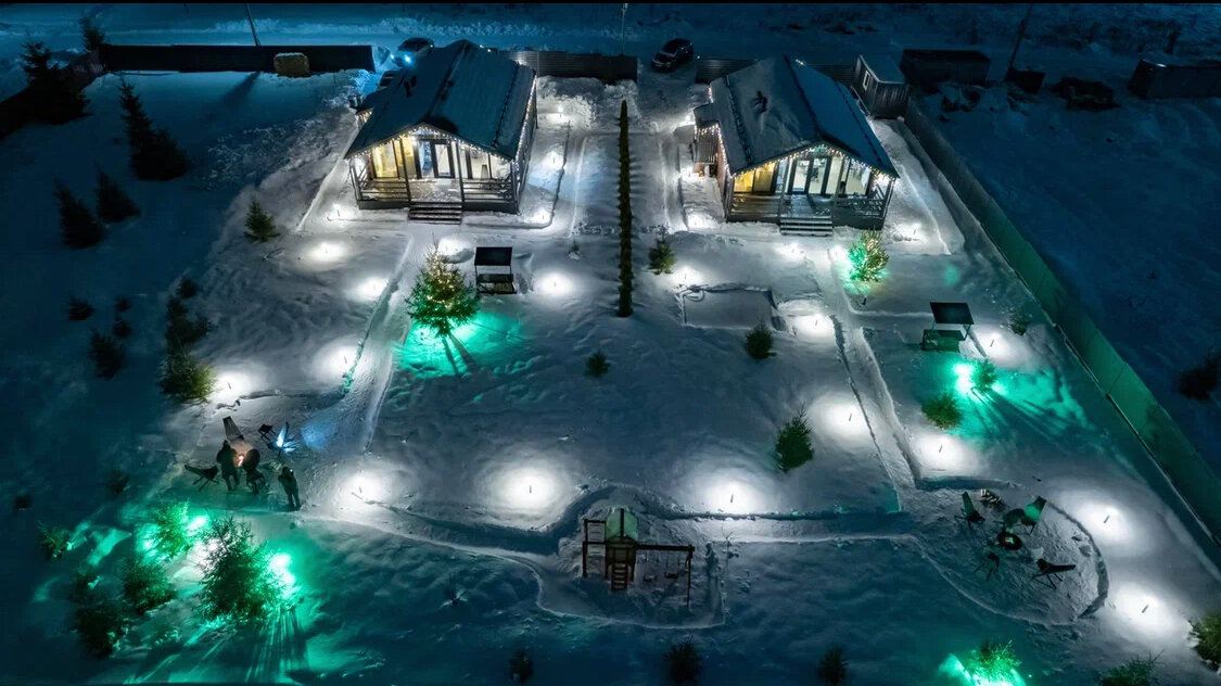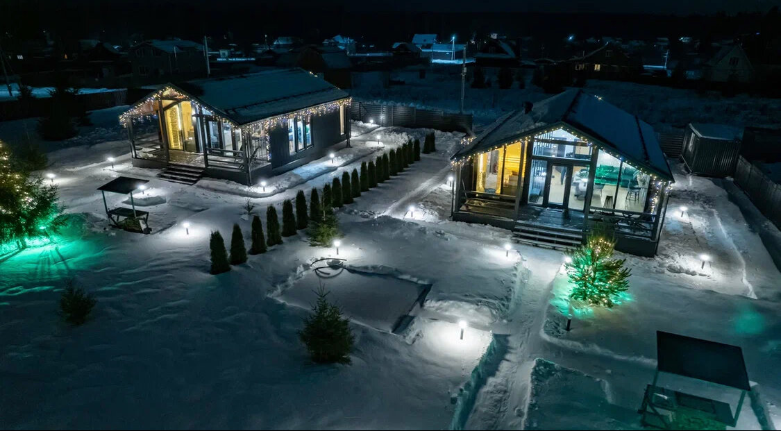 - Баня/сауна с панорамными окнами.; Полная комплектация домов (всё для комфортного отдыха).; Просторные новые дома.; Ухоженная территория.; Мангальная зона и место для костра.