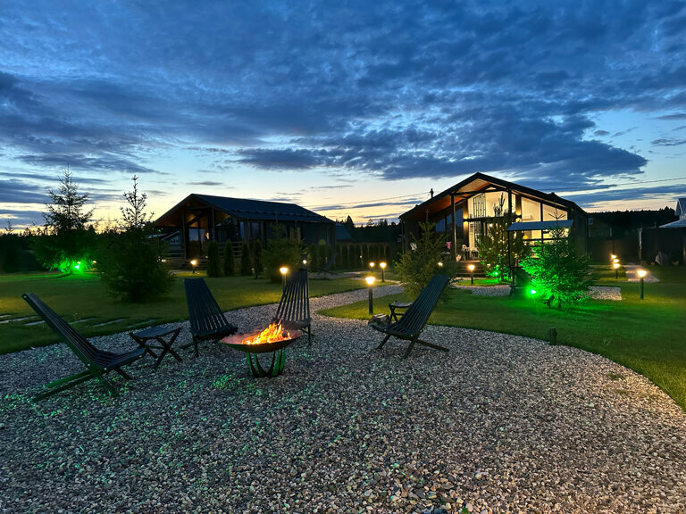 Прекрасное место для отдыха от городской суеты и рутины. Идеально подходит как для дружеской компании, так и для семейного отдыха; для детей во дворе есть детская площадка, а в домиках — детские кроватки В самих домах есть всё, что нужно для комфортного времяпровождения. Отдельно отмечу сауну с панорамными окнами ‘в пол’ — интересное дизайнерское решение, и не в ущерб функциональности. Греет очень ощутимо))) На просторной территории есть мангальная зона, где получаются очень вкусные шашлыки, а также место для открытого костра. Место очень удобное с точки зрения расположения — недалеко от Москвы. Можно поехать на выходные, а можно и на больший срок. Рядом есть интересные локации из серии агро-туризма, фермерские продукты и т.д. Поэтому, в целом пять баллов и, конечно же ‘must visit’