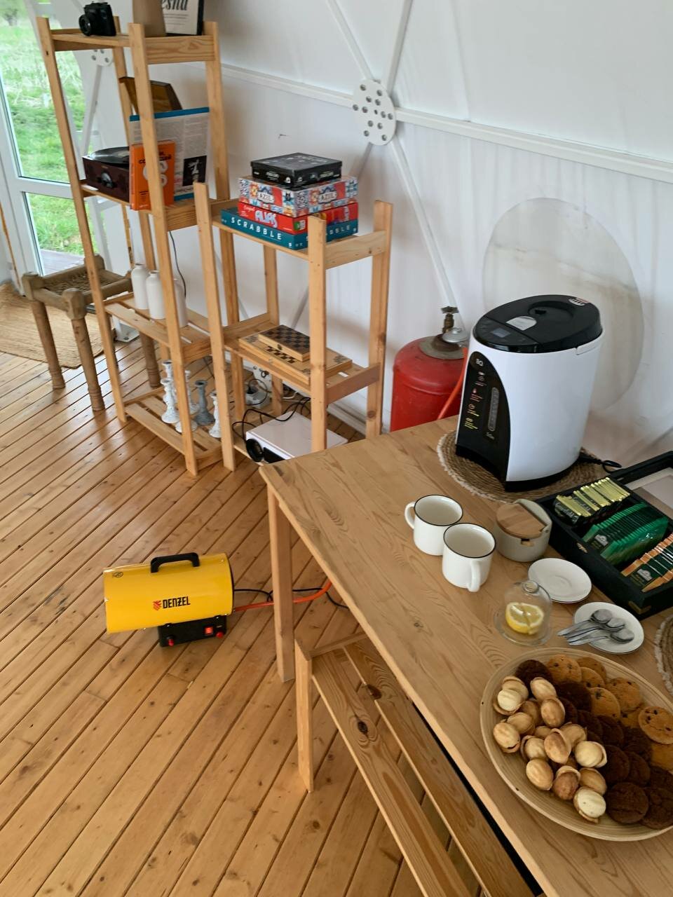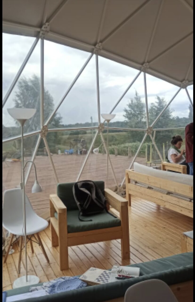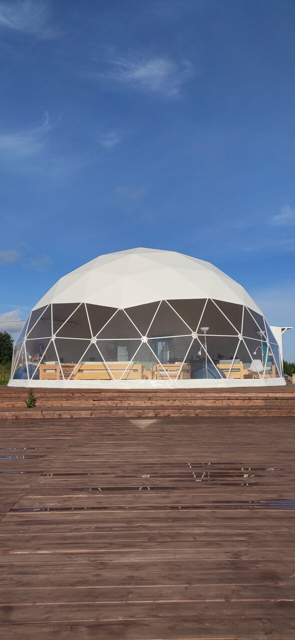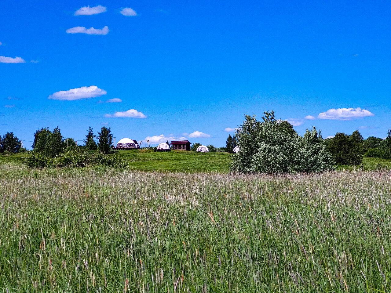 Великолепное, уединенное место! Прекрасный вид на долину, уютные купола. Ночью в куполе тепло. За каждым куполом закреплён свой санузел с туалетом, умывальником и душевой кабиной, есть фен. Великолепная липа, под которой можно укрыться от солнца. Хорошие, сытные завтраки. Отдельный плюс, что можно приехать с собакой. Территория обработана от клещей. Для гостей с детьми есть детская площадка. В общем купале есть настольные игры, небольшая библиотека, бесплатные велосипеды.