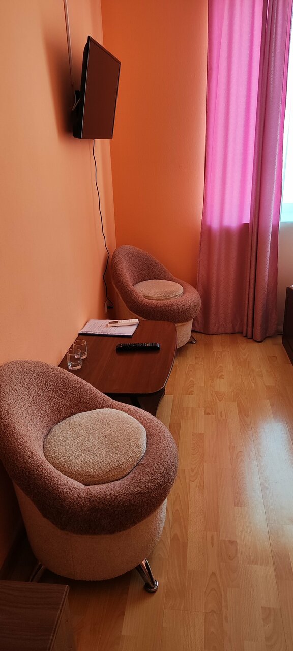 Отель хороший, для путешественников. Рядом с трассой. Номера приличные. В нашем не было телевизора, но и смотреть его было некогда. Цель прибытия была только переночевать. Есть стоянка бесплатная. Есть кулер на этаже. Сняла звезду, так как нельзя курить на всей территории отеля и нет мест для курения. Надо бы предусмотреть!