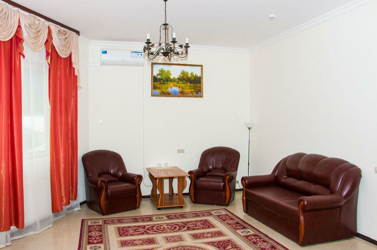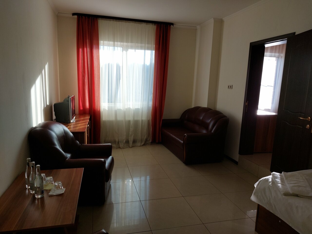 Ужас и жуть! Красиво только снаружи ,не более того! Туалет спускает плохо,вода еле теплая в душе,по вентиляции несёт вонью!. Фена нет,ложечки обувной нет! Половина мебели сломано! А про их кафе/ ресторан отдельно… Хотели вечером семьёй поужинать и спокойно обсудить планы на поездку….не удалось! В зале гремела музыка так,что уши оглохли! Ласковый май и шансон….меня не слышали не семья,не официанты.Поэтому собрались и быстро ушли в номер.Утром отдавали ключи,так к нам даже не повернулись сказать Досвидания! Никому не советую! Испортили все,хотя могли сделать конфетку!