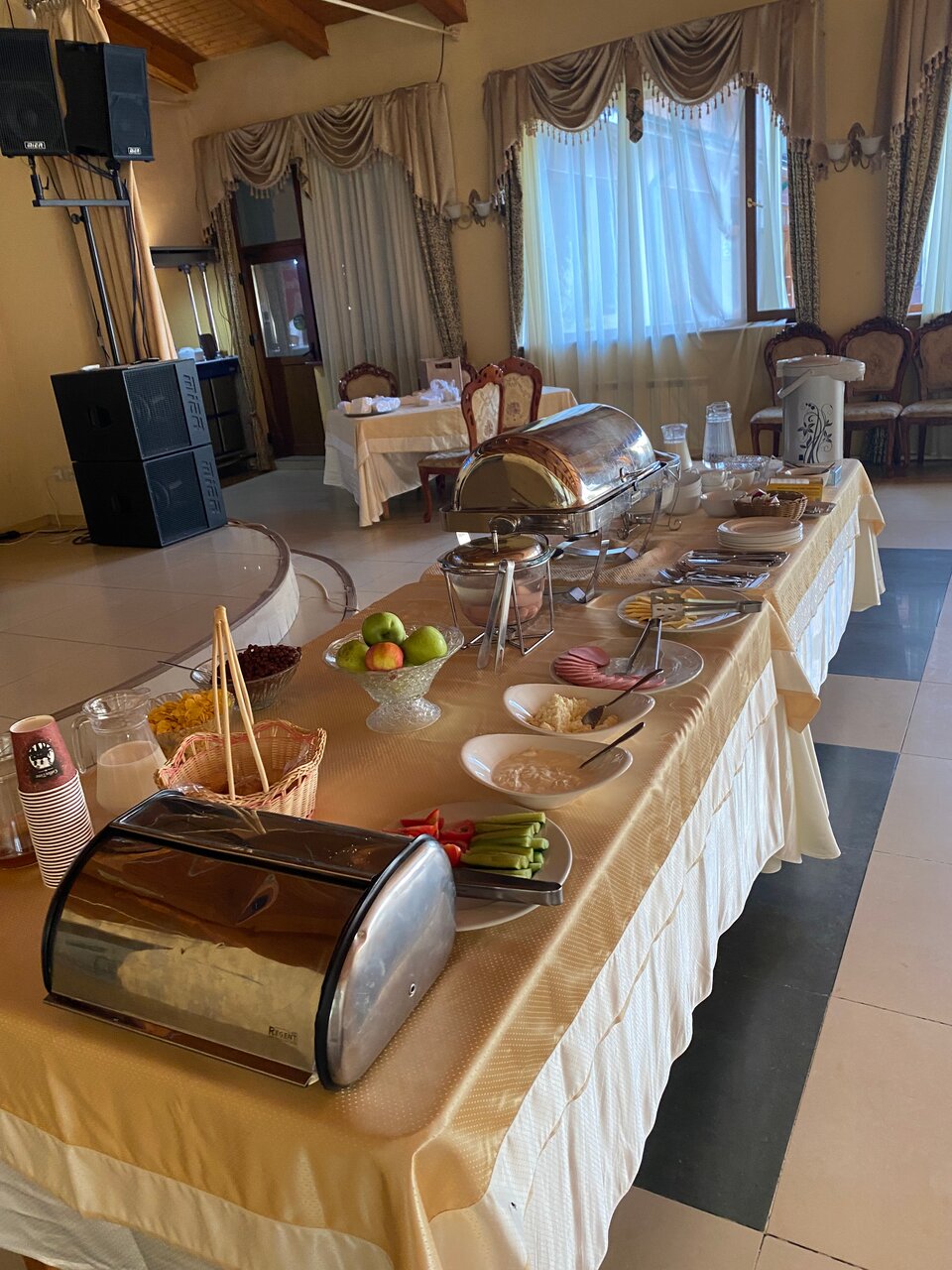 Это ужаснейшая гостиница ! Я даже представить не могла , что в наше время бывает такое убожество! В ванной комнате стоит железная дверь, только представьте как это выглядит. Все ободранное и грязное , тюль , шторы это чудовищное зрелище! Ресторан при отеле — это ужасная кухня , ощущение что там нет повара , что люди которые там работают не умеют готовить вообще , есть не возможно ничего , что заказывала ! Завтрак — чудовищный , сосиски плавают в ХОЛОДНОЙ ВОДЕ , амулет холодный. Выбора нет вообще ! Кексы на столько старые что даже страшно их есть!