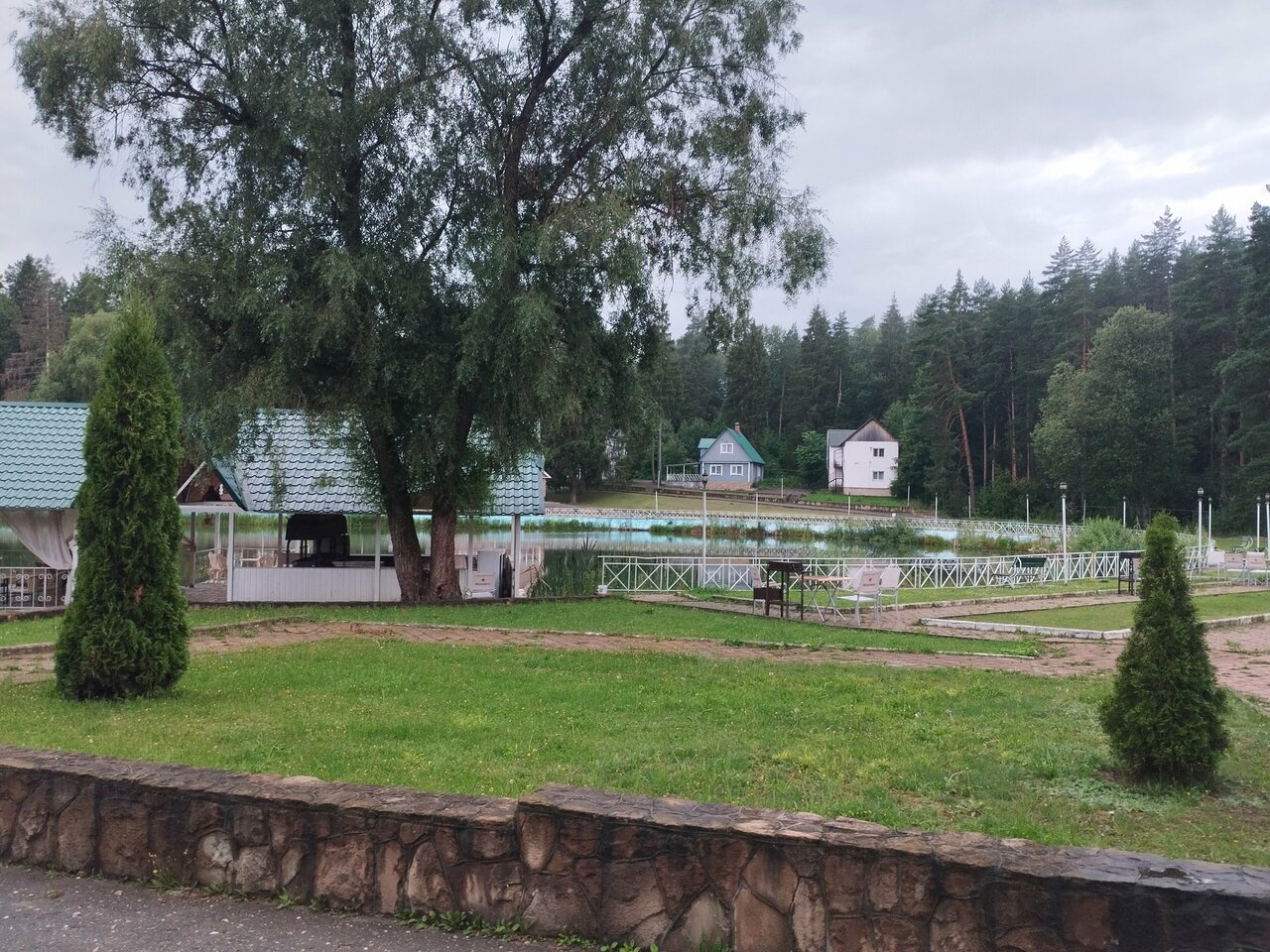 Отдыхали несколько раз, и ещё приедем) Уютное место, красивая природа вокруг, доброжелательный персонал. Домики на 3,5, но на это сильно внимания не обращаешь, когда вокруг такая природная красота. На территории есть ресторан, вкусная еда. Но в летний период практически все выходные занят под свадьбы. Поэтому мы пользовались зонами барбекю.