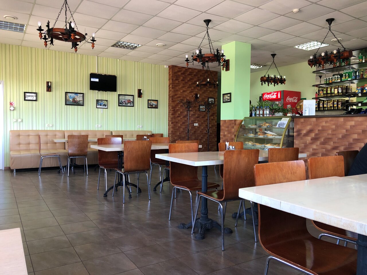 Половины меню нет, персонал не вежлив и печален, ни кофе из кафе машины, ни блинов ничего что бы нам хотелос поесть в дороге нет, больше не заедем.
