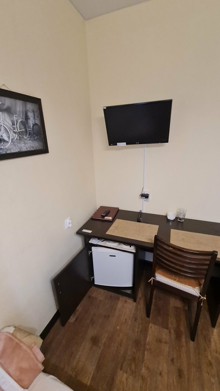 Однокомнатный номер с двумя раздельными кроватями , охраняемая стоянка бесплатный Wi-Fi, в номере : холодильник, телевизор, ванная комната.Кафе на первом этаже.