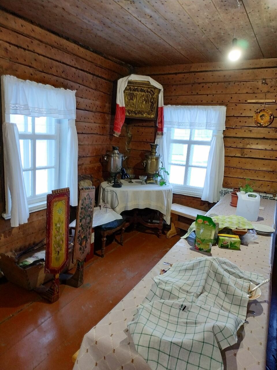 Останавливались тут на ночь. Хотите пожить в аутентичной обстановке в доме приказчика — вам сюда. Очень вкусный обед, хозяйка сама печет хлеб, рыбники, вкусная уха. Много предметов старины. Спали в старинных кроватях, единственный минус — раньше люди были меньше ростом, из-за этого кровати коротковаты
