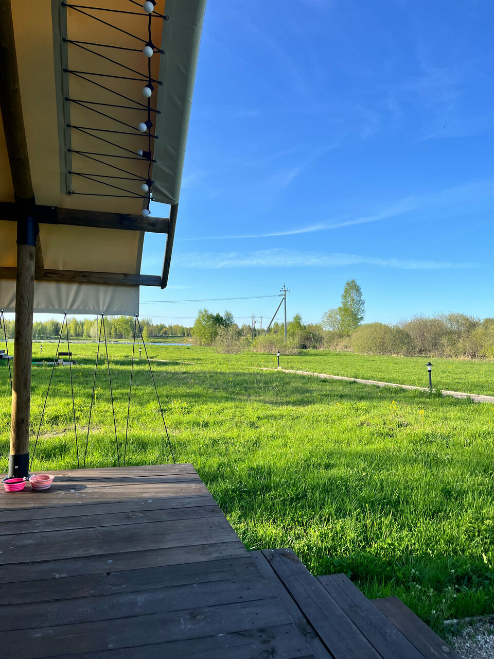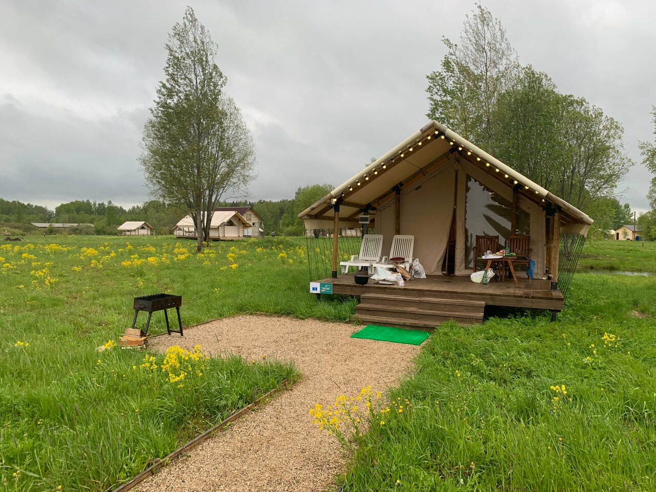 Приезжая в Пушкинские горы посетите это место-отдых на природе,пение птиц,посиделки по вечерам у костра зарядит вас энергией . Отличный ненавязчивый персонал,прекрасная кухня-завтраки у детей-приверед исчезли из тарелки за считанные секунды.В палатке отличная мебель:удобная кровать с белоснежным бельем,деревянные тумбы и шкафчик.в нашей палатке была душевая кабина и санузел-работает все исправно;в июле вечером было прохладно,а в палатке комфортно. Отдыхали с собакой и персонал отнесся с пониманием и вежливостью к нашему шумному товарищу. Спасибо за прием. Обязательно вернусь сюда снова!!!