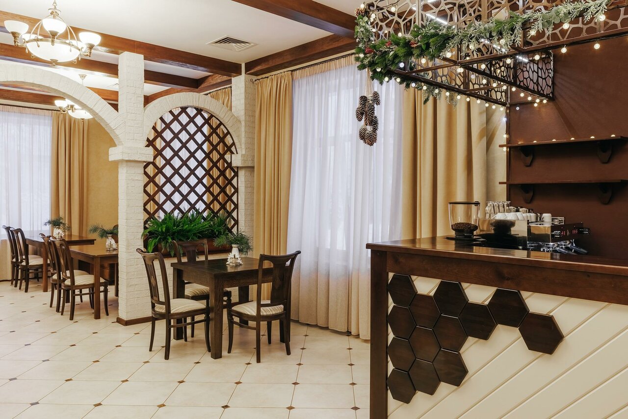 - Удобная транспортная доступность (включая трассу М12..; Возможность уединения и отдыха для интровертов.; Детские развлечения (ёлка, аниматоры).; Новогодние программы и банкеты.; Великолепная баня.