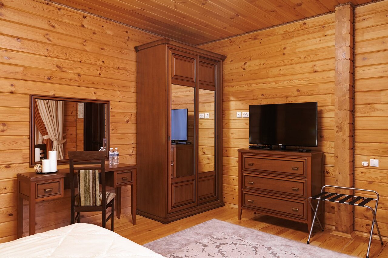 Очень высокого уровня коттедж Кольчугинский. Спроектирован и выстроен с умом и любовью. Большие спальни с шикарной мебелью и санузлами. Роскошная гостиная с огромным камином, диванами и креслами. Дрова приносили по первому требованию. И вообще все пожелания исполняли очень быстро — от замены белья до второго одеяла. Полностью оборудованная кухня-столовая. Окна в пол. Второй свет. Выход из спальни на террасу. Вид на чудесную речку Гусь. Волшебная елка в гостиной. Другие коттеджи тоже замечательные, но в них нет камина. Очень рекомендую тем, кто любит комфорт. Стандартные номера, кстати, тоже очень неплохие. Большие, светлые. В корпусе всего 6 номеров и большой холл.