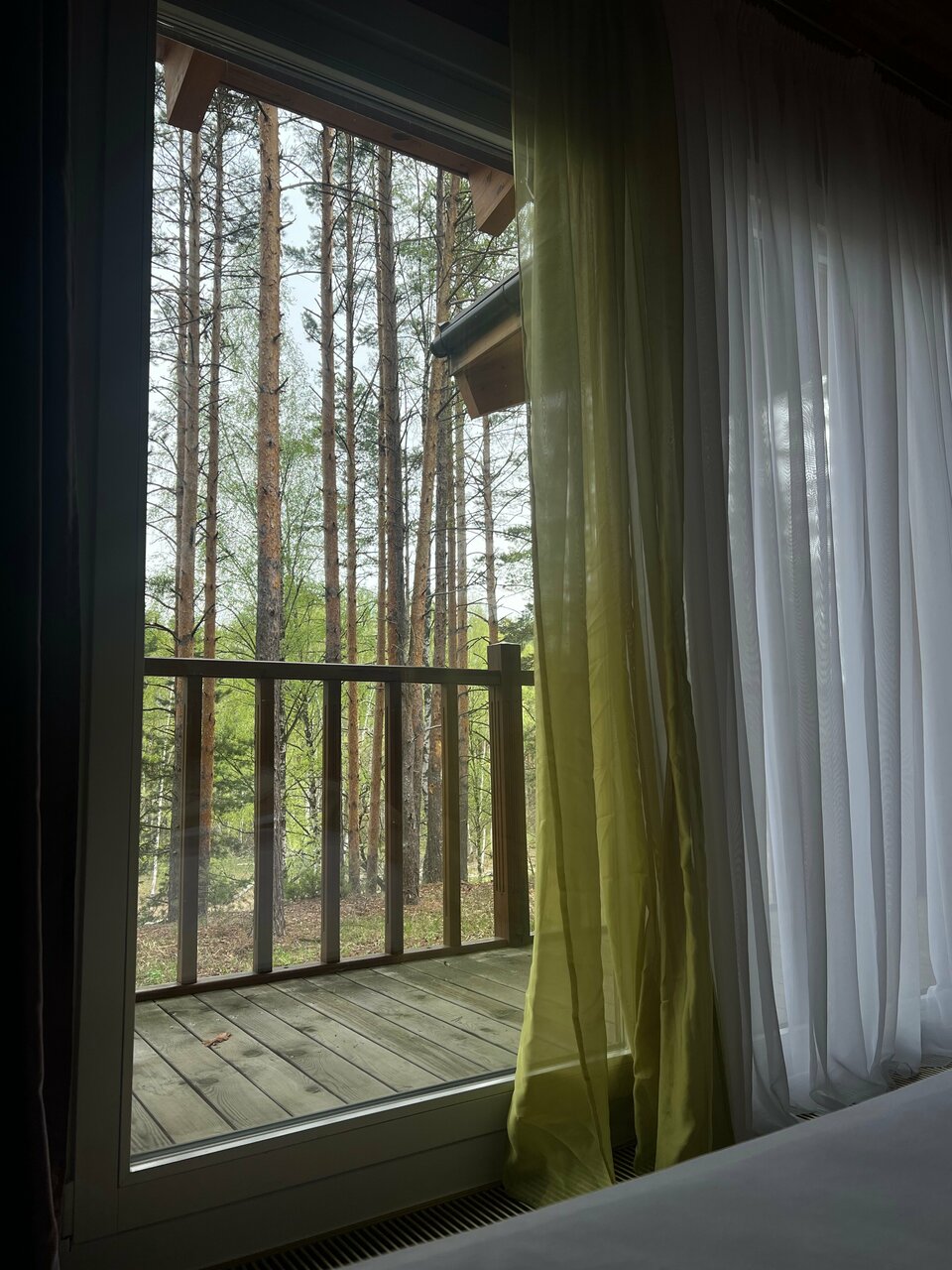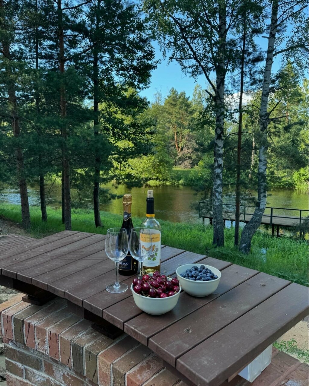 Отличное место, тихо, красивая природа. Останавливались в коттедже. Всё очень достойно, комфортно, порядок, хорошой ремонт, есть все необходимое (полотенца, халаты, тапочки, шампунь итд, на кухне — посуда, кофемашина, чай, кофе). Сам коттедж сделан оригинально, большой балкон, можно посидеть полюбоваться на природу.
