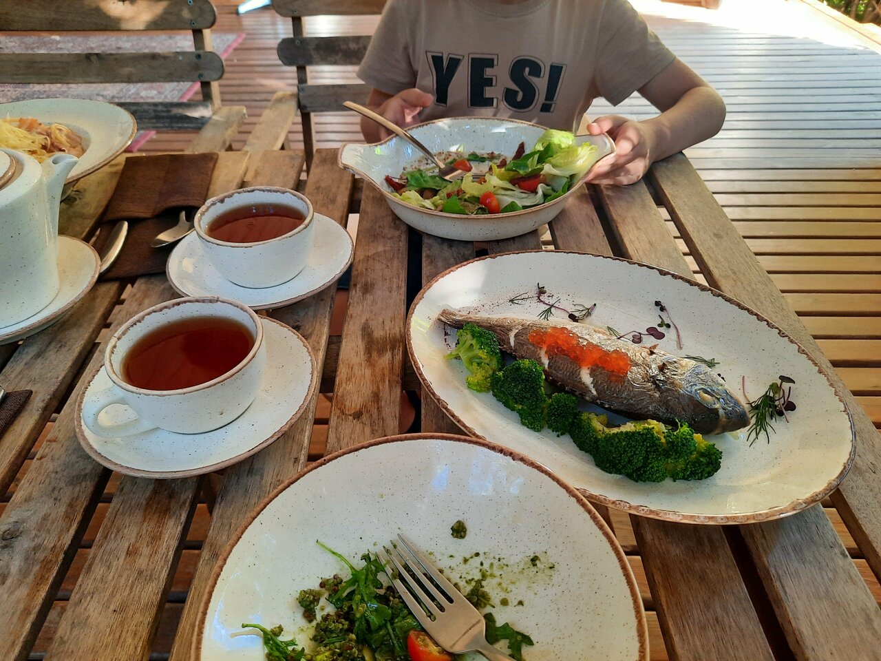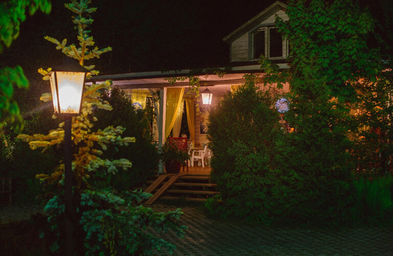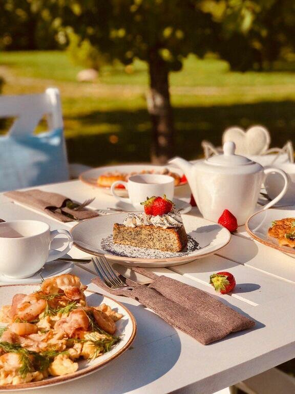 Отдыхала два раза и обязательно приеду еще! Воздух чистый, территоия большая, детям площадка, кафе, игрушки и книги в кафе. Завтраки вкусные, я не люблю омлет и творог, но в скоково ела с удовольсвием — сказали из феомерских продуктов. Парковка есть и около дома и кафе! Мне осень понравилось в этом месте.