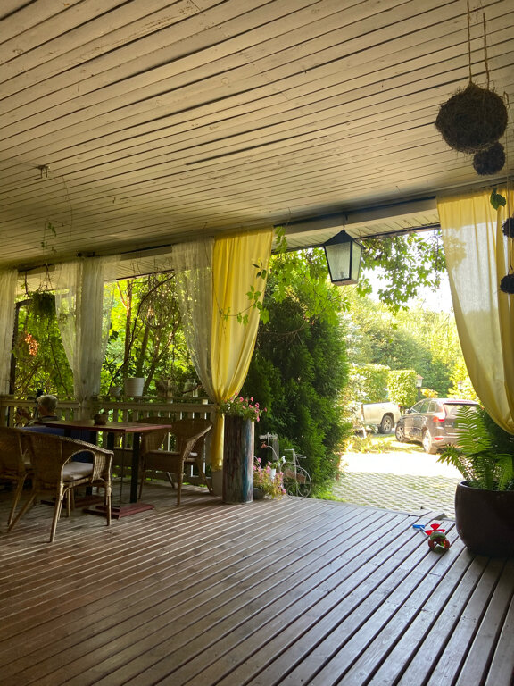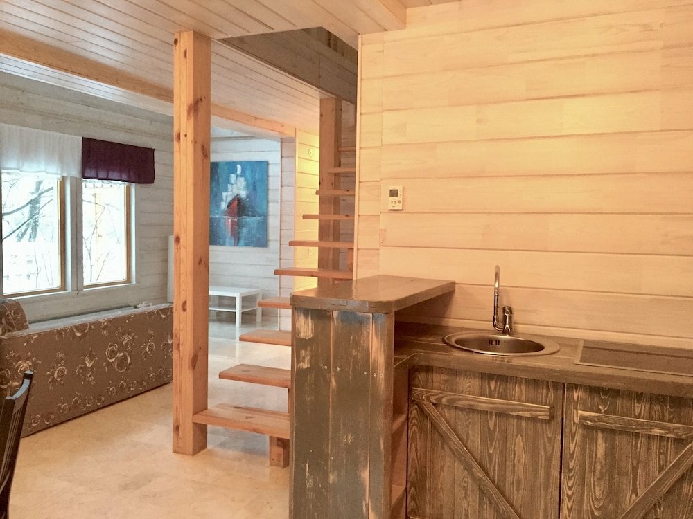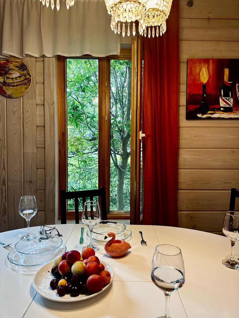 В целом место приятное, но дома пора, к сожалению, обновлять, была в 2019, разница есть ;(, санузлы в плачевном состоянии, шкаф сломан, фасад облуплен, душевая кабина не закрывается, холодильник качается, ручка в сауне отваливается, занавеска в ванной настолько тонкая, что она прилипает во время мытья, на диване, в санузле и кровати элементы недоуборки в виде длинных волос. Стоимость за ночь была 17 500, поэтому немного расстраивает состояние домика. Уверена, что идея — люди приезжают за атмосферой, наверное, да, но я перечислила некую гигиеническую историю, которая не требует больших денежных вложений, сама живу в доме, поэтому, кроме атмосферы, хотелось бы вешать верхнюю одежду в шкаф, а не класть рядом, потому что его заклинило ;)) Не могу не отметить, что персонал чудесный и в администрации и в ресторане (атмосфера домашняя). Ещё было бы здорово, чтобы в домиках были шапочки для сауны, пусть за деньги, хотя это странно или включите в стоимость проживания 300 руб.