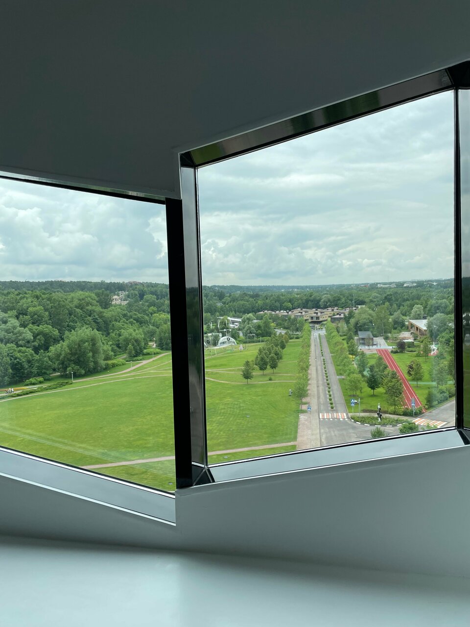 Сложно найти свой лифт, (да да, там много корпусов и они идут по кругу), вечером безлюдно, оч скучно, в целом тихо, рядом хорошие прогулочные дорожки и красивые пейзажи. Место чтобы смотреть в даль и слушать тишину. Помолчать) кроме классов обучения и в час пик ресторанов, когда они работают, а это небольшой диапазон времени.