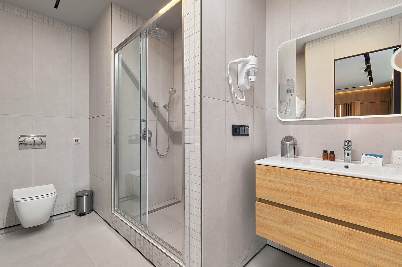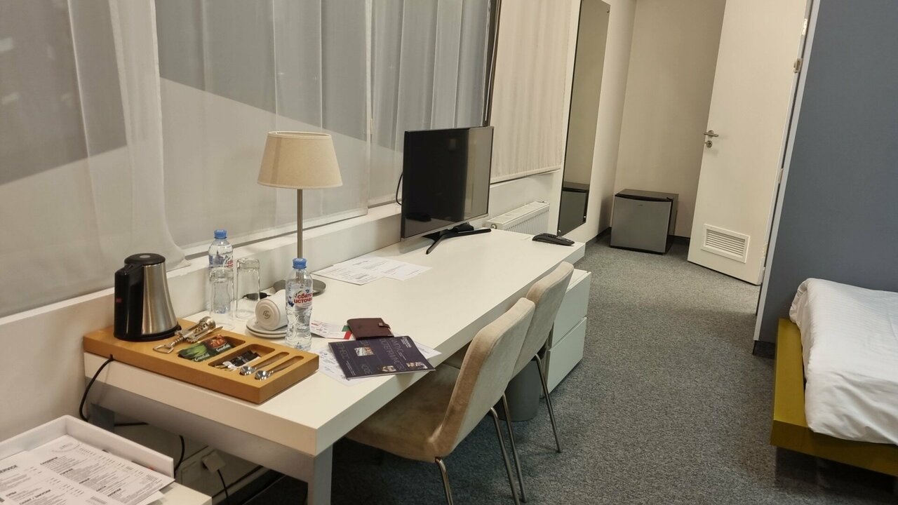 Чисто и просторно. В номерах есть всё необходимое. Даже наборы для бритья и чистки обуви. Много шкафов. Из минусов — попал в период отключения электричества на пару десятков секунд. При этом, лифт не работал примерно четверть часа. Лестница была заперта. Получается, что гости были заложниками этажа. Впрочем, это лишь мелочи.