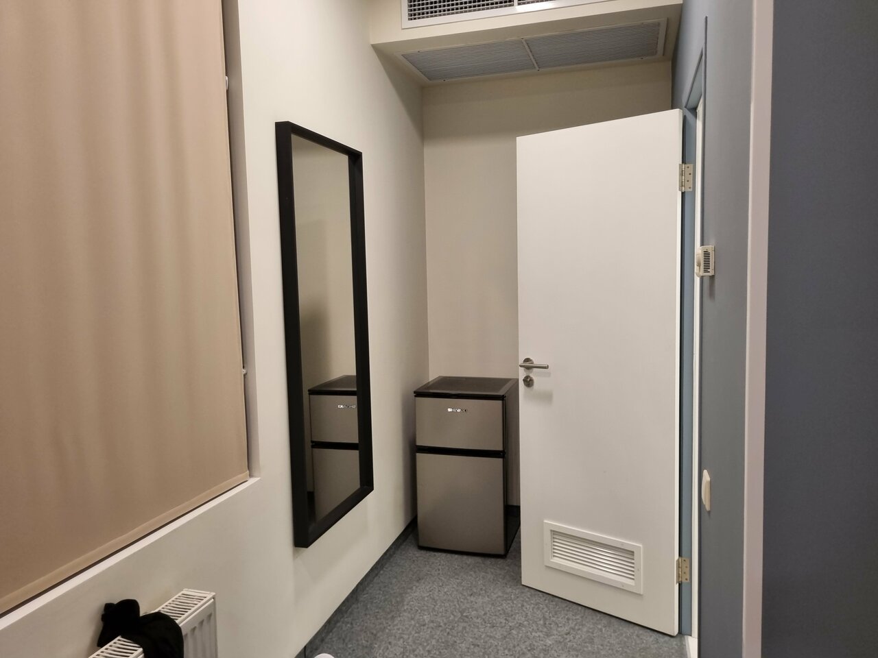 Интерьер номеров располагает к работе и обучению. Ничего лишнего, все строго и практично. Что особенно заметно — мебели более чем достаточно. Дискомфорта от недостатка шкафов и полок не будет точно. Из минусов — слабая шумоизоляция. Но контингент приличный поэтому минус не значительный. В целом все устроило, оценка 5. Спасибо
