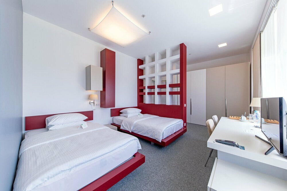 Все отлично. Номера соответствуют описанию. Классно, что в номере был утюг, электрочайник, гладильная доска. Завтраки очень порадовали, каждый найдёт еду на свой вкус: каши, блины, оладьи, сырники, омлет, сосиски, фрикадельки, картофель запечённый, овощные нарезки, сыр, различные сухофрукты, сиропы, варенье… Чай, кофе, соки. Даже придраться не к чему. Одно хочу отметить: гостиницы находятся в нескольких остановках от технопарка. Добраться не сложно, однако это надо учитывать.
