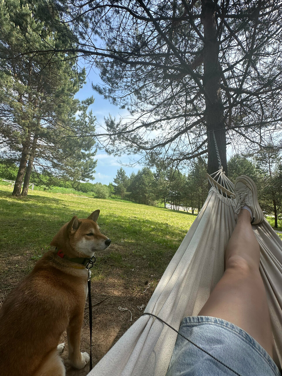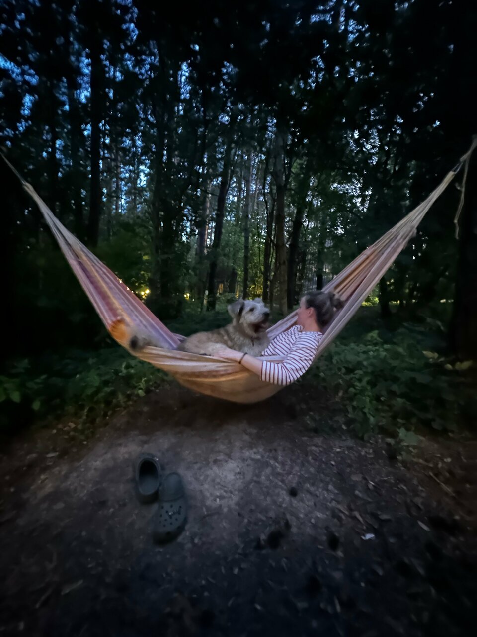 Всё было отлично! Отдельный восторг — гамак в сосновом лесу: ветер колышет сосны в разные стороны, облака бегут на голубом небе — красота!!!