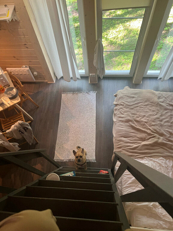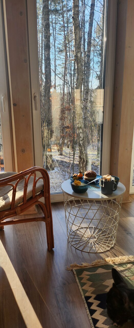 Замечательное место. Отлично отдохнули, нагулялись в лесу и надышлись сосновым воздухом. Три дня спокойной тихой и размеренной жизни. Абсолютно дог френди! Собака наша также в восторге, особенно от панорамных окон в домике. В домике чистота, есть все необходимое. Очень тепло и уютно. Кровать очень удобная. Уезжать не хотелось. Вернемся обязательно сюда в теплое время года.