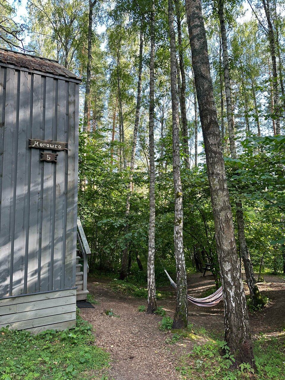 Догфрендли отель. Уединенные домики в тихом месте. Понравилась сауна и пол с подогревом в ванной. Было уютно и приятно отдохнуть от городской суеты. Возле каждого домика есть гамак и мангал. На территории есть ресторан, качели, собачья площадка.