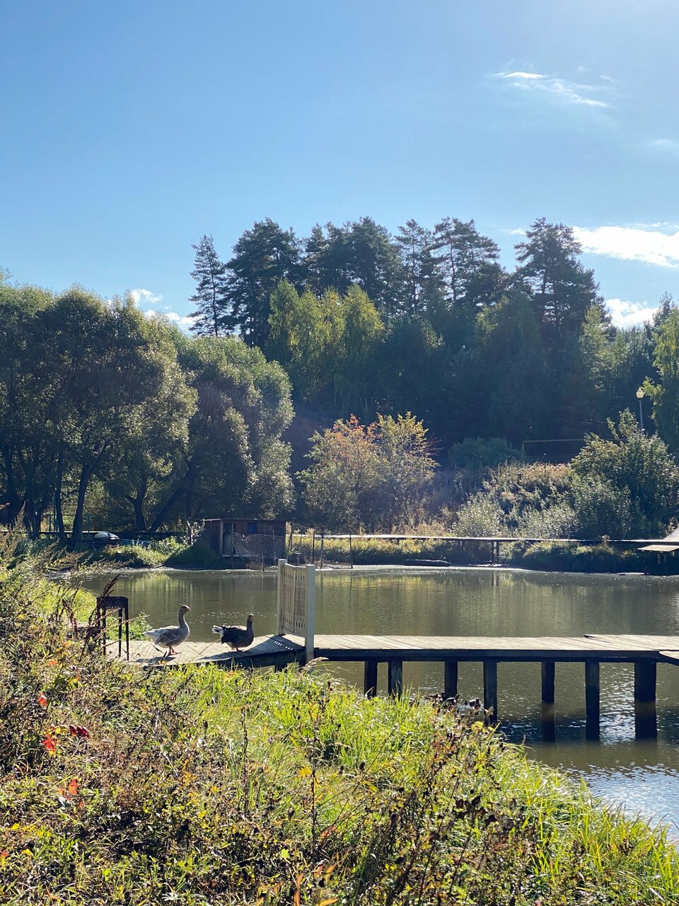 Классное место, уютные домики со всем необходимым. Территория красивая, сосны, огромный пруд. А какие там гуси — приезжайте и увидите сами!