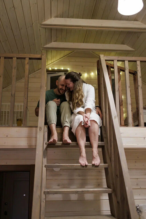 Здесь царит удивительная атмосфера спокойствия и умиротворения. Дома выглядят опрятно и чисто. Хотя лестницы на второй этаж в этих домах могут показаться немного неудобными, это не является серьёзной проблемой. Зато из огромных панорамных окон открывается великолепный вид! На территории комплекса есть всё необходимое для приготовления пищи: мангал и возможность приобрести уголь и розжиг. Обязательно вернёмся сюда ещё зимой!