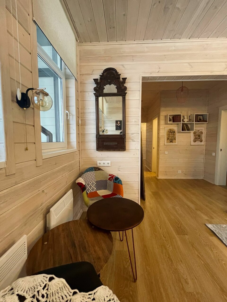 - Близко озеро, волейбольная и теннисная площадки, конюшня, ресторан.; Все новое, чистое и приятное.; Продуманный дизайн и эстетика.; Мангал и столик на улице.; Книги для взрослых и детей.