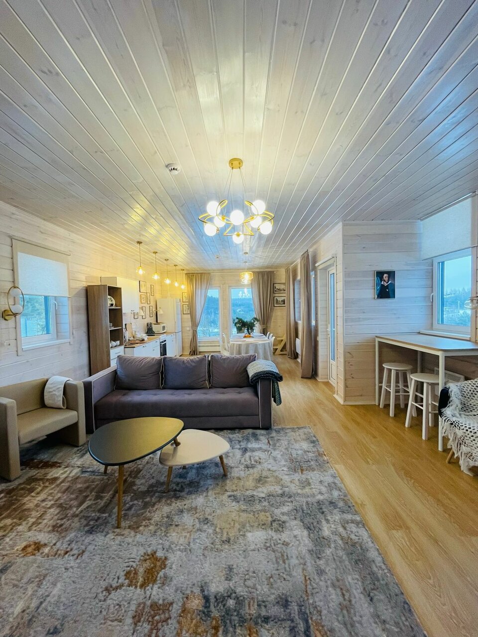Было очень приятно у вас остановится и отметить день рождения сестры. Очень просторный, интересно оформленный светлый дом. Несмотря на то, что завтракать и отмечать день рождения ходили в ресторан ‘Берлога’, в доме тоже пили чай за большим столом, за которым так же играли в настольные игры. Было очень уютно! Тёплые полы, ковёр, тапочки, удобные кровати, регулироваемое отопление и другие НЕ мелочи, все продумано очень здорово. Отдыхали с двумя маленьким собаками, спасибо, что вы dog-friendly, это для нас очень важно. Ставлю оценку 5* авансом. Обязательно установите посудомоечную машину, приезжая большой компанией очень не хочется тратить время на мытье посуды. И даже если это делают у вас горничные, то посуда местами не очень чистая (включая подставку у плиты, вазы и тд).