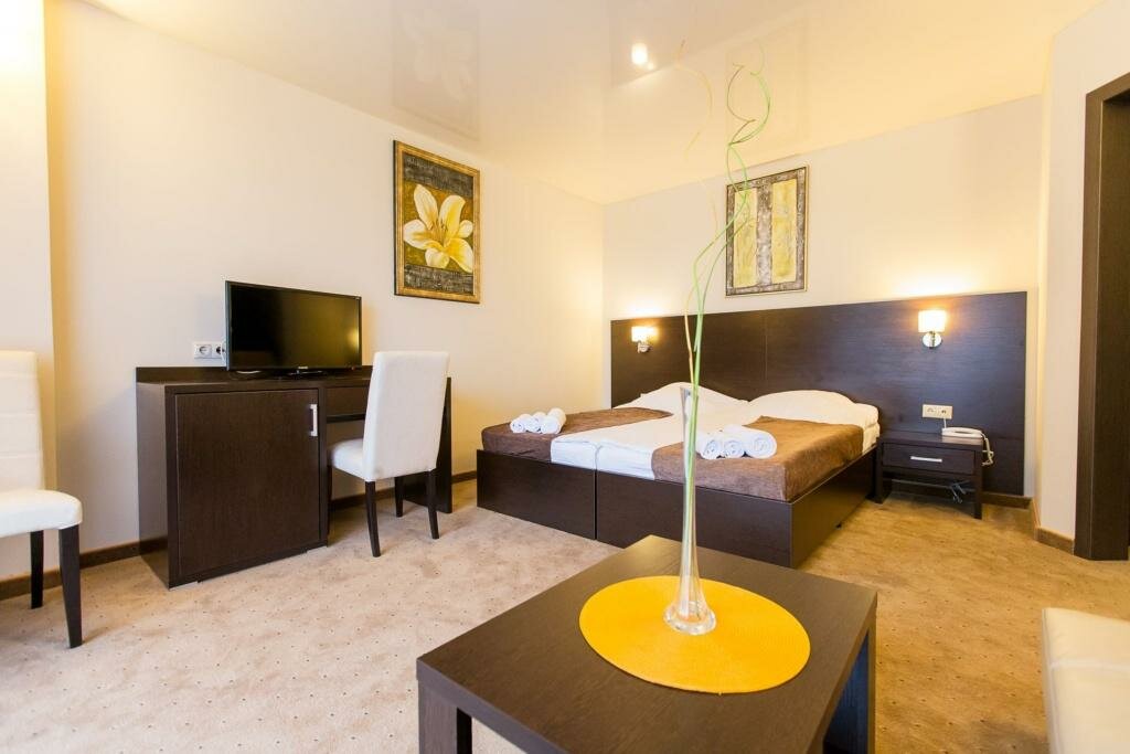 Услуги и удобства: гардероб, рабочий стол, мягкая мебель, телефон, телевизор с плоским экраном, ванная комната, фен, туалетные принадлежности, комплект полотенец.Площадь номера: 32 кв. метраРазмер кровати: 2 односпальные или 1 двуспальная кровать