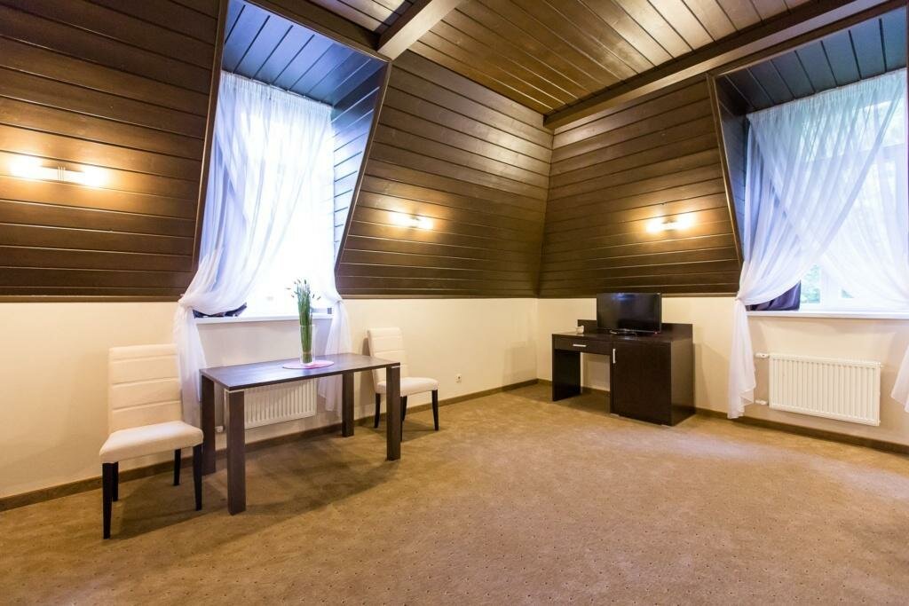 Останавливались на сутки. Уютное место, в лесу. Очень хорошо спиться в таком месте. Брали номер стандарт на мансарде, все понравилось!